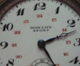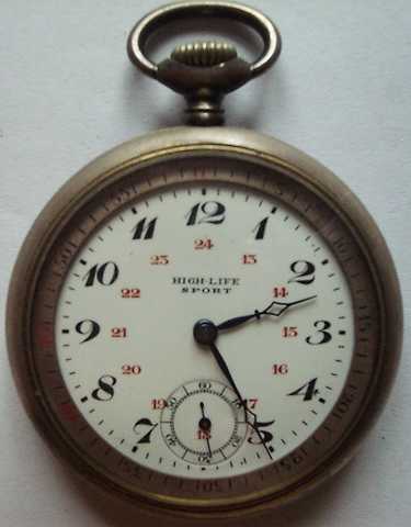 Nickelgehäuse mit besonderer, drehbarer Lunette mit einstellbarem 45 Minutenbereich 15-steiniges, gereinigtes Ankerwerk Verkauft Zum Vergrößern bitte Bild anklicken.