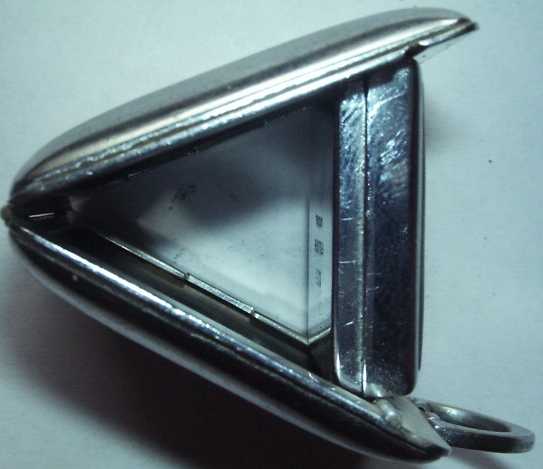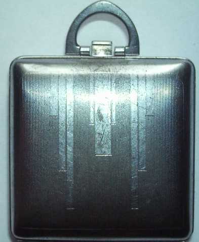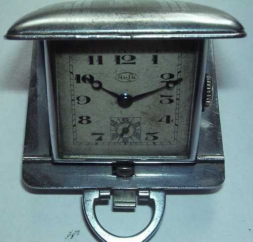 Metall/Chrom Gehäuse Eine Anhängeuhr aus den 40er Jahren klappbar und aufstellbar 15-steiniges, intaktes HAU-Werk Verkauft Zum Vergrößern bitte Bild anklicken.